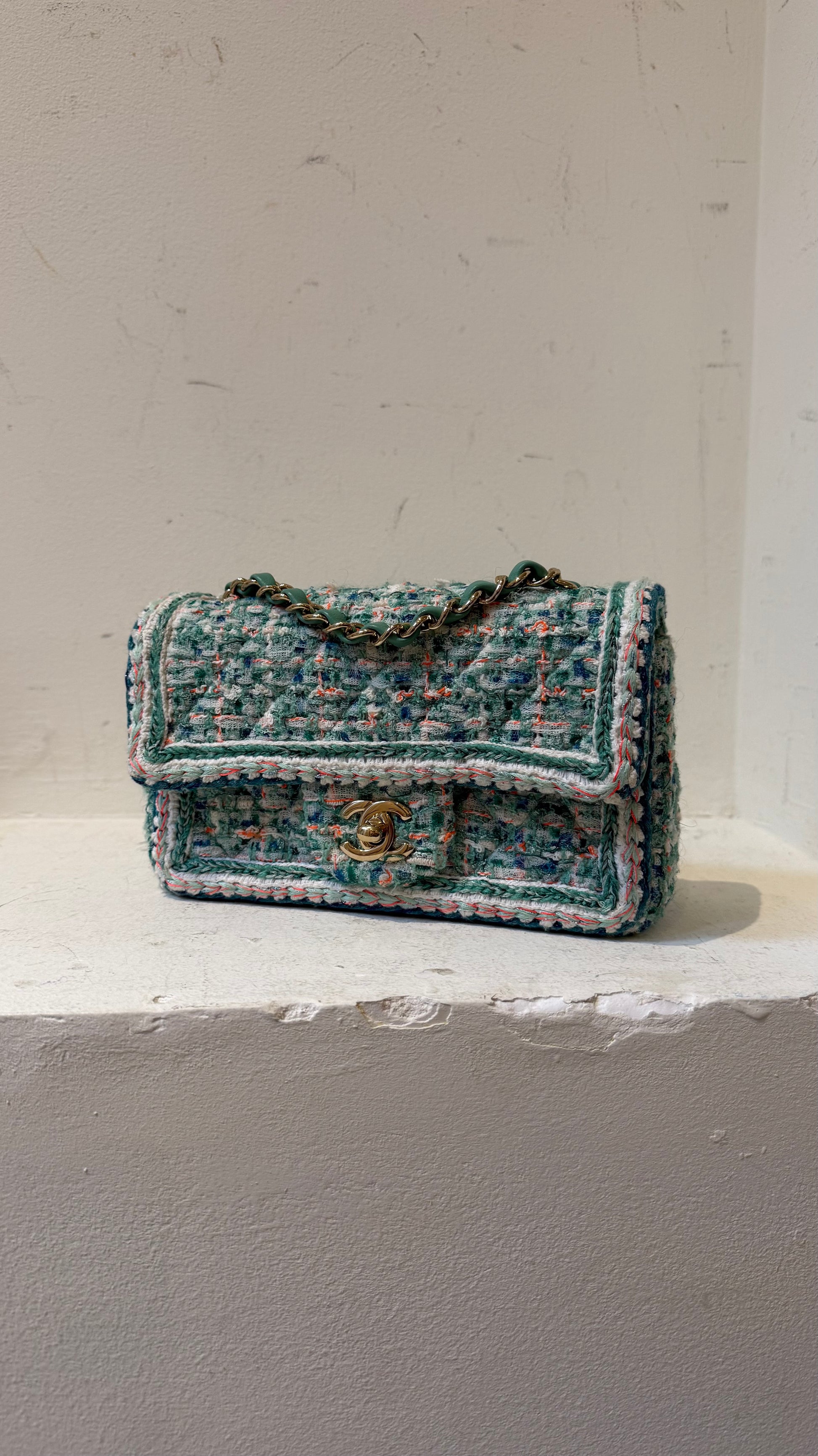 Chanel green/blue tweed mini
